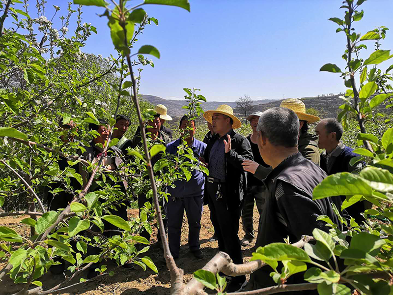 4月27日,应秦安县叶堡镇程崖村邀请,天水市果树研究所所长张莲英、副所长曹金石带领技术人员前往该村,开展春季果园管理技术培训指导,40多名村民了参加培训。