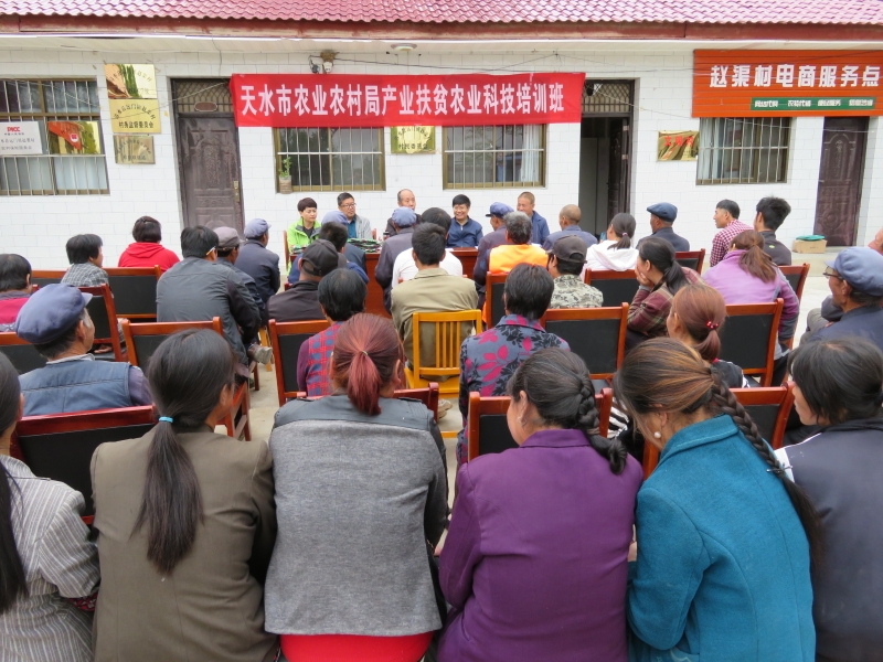 培训会邀请甘肃省养蜂研究所、麦积区林业局及市农技中心专业技术人员分别就蜜蜂养殖及管理、花椒栽培及病虫害综合防治、旱作区马铃薯全膜双垄沟播栽培等技术进行了详细讲解及现场演示。专家针对当地群众养蜂基础好、积极性高,但仍沿用传统养殖方法及老蜂群,表现产量低、难管理、病害多等实际,就如何进行蜂群改良、转变传统养殖方式、科学掌控繁殖途径、对蜂群不同季节关键管理技术及注意事项做了详细讲解,深入农户养蜂现场进行了交流指导,介绍诸多养殖经验。针对该村近年花椒建园面积大,幼树期效益较低的实际,专家利用观看PPT及图片资料的形式,介绍了天水市辖区大量花椒高产高效栽培经验及致富典型,使群众重视花椒产业发展的信心倍增,重点在栽培现场详细讲解了花椒对环境条件的要求及高产高效栽培关键技术。同时专家详细讲解了近年为该村引进试验示范筛选的马铃薯特征特性及全膜双垄沟栽培技术,并做了现场演示。培训会通过集中讲解与现场演示相结合的方式进行,参训人员听讲认真,互动交流活跃,群众发展产业致富情绪高涨,培训工作受到当地村民的欢迎。