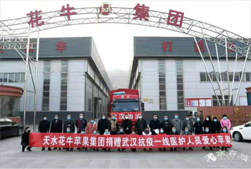 通过市苹果产业协会倡导市内各果品营销企业和合作社,积极组织货源,结合各自营销渠道主动对接国内各大市场,平价交易稳定果品市场供给,全力保障好城乡居民的“果篮子”。在果品包装运输过程中,做好操作区的消毒和操作人员的防疫工作,认真做好果品质量检测和检验,充分保证了果品质量安全和操作工人的健康,实现科学配送。2月8日,清水县旺林苹果种植农民专业合作社、福英果业有限公司等企业和郭安明、梁贵平等爱心果农捐赠的13吨优质花牛苹果从清水县出发运往武汉金银潭医院、中南医院等医疗机构。2月9日,由天水花牛苹果(集团)有限责任公司、天水鸿昌农业综合有限开发公司两家爱心企业捐赠武汉的首批40吨优质花牛苹果从麦积区出发,预计于2月11日后可陆续运送到武汉市。