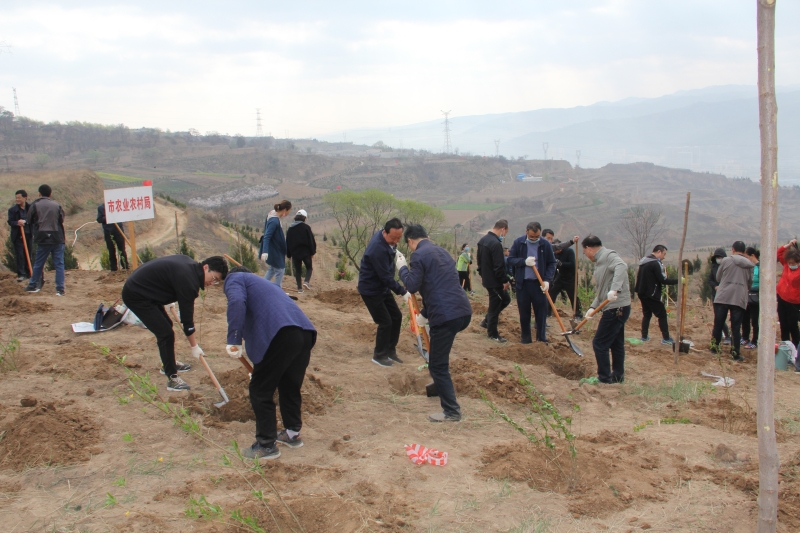 春回大地,生机勃发。3月25日上午,天水市农业农村局积极响应市委、市政府开展2020年市区两级义务植树活动的号召,践行绿水青山就是金山银山的理念,全局干部职工深入秦州区玉泉镇王家磨村北山连翘生态园参加义务植树活动。