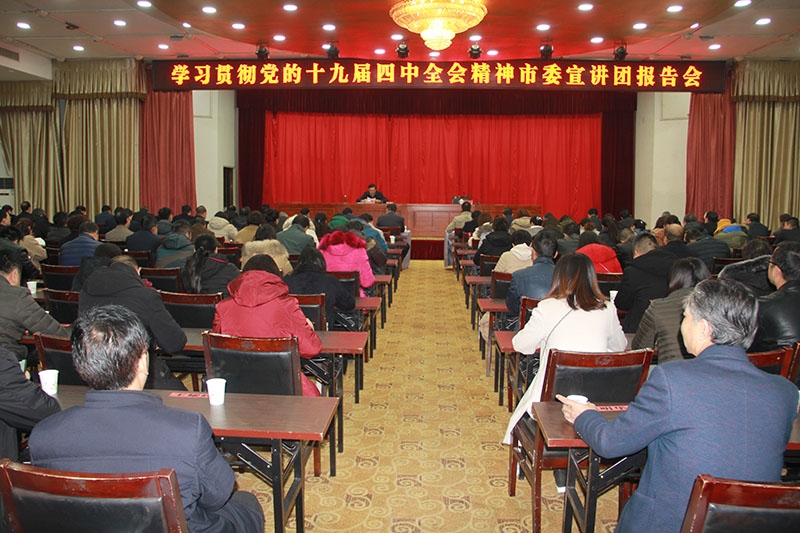 12月12日,市委宣讲团成员、市领导赵卫东为市直农业农村系统党员和干部职工作学习贯彻党的十九届四中全会精神宣讲报告。