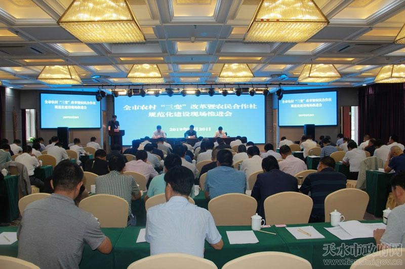 8月20日,全市农村“三变”改革暨农民合作社规范化建设现场推进会在麦积区召开,会议总结交流全市农村“三变”改革、农民合作社规范化建设的经验做法,分析面临的形势和存在的困难问题,安排部署下一阶段工作任务。副市长逯克宗出席会议并讲话。市政府副秘书长邵宏伟主持会议。市直有关部门负责人、各县区党委政府分管领导、县区农业农村局局长、经管站站长、7县区35个乡镇主要负责同志等共90多人参加了会议。