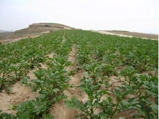 4. 秦安县马铃薯全程机械化生产示范点:该示范点位于秦安县中山镇,平均海拔1762米,年均降雨量587mm,年平均气温10℃,土壤肥沃,适合马铃薯种植。示范点建设采取集中连片种植,机械化作业,马铃薯耕、种、管、收机械化作业面积达到全覆盖,示范点内投入资金186.5万元,占计划投资124.3%,完成陇薯7号、荷兰15号两个加工型马铃薯品种种植面积1400亩,其中: 荷兰15号原种1200亩,陇薯7号一级种200亩,马铃薯种子优良率、统供率达到100%,示范点建设区域内全部采用科学配方施肥,农田肥效利用率达到40%以上,通过控施农药,保证了马铃薯农药无残留。依托秦安县鑫晟农业农民专业合作社,围绕特色优势产业,开展马铃薯产业示范培训,完成建档立卡贫困户特色优势产业示范培训100人。通过各项措施落实,经测产示范点建设区马铃薯亩均产量达到1720公斤,超目标产量4.2%,较非示范点建设区产量亩均增加160公斤,带动贫困户该单项收入亩均增收215元,起到有效辐射带动作用。