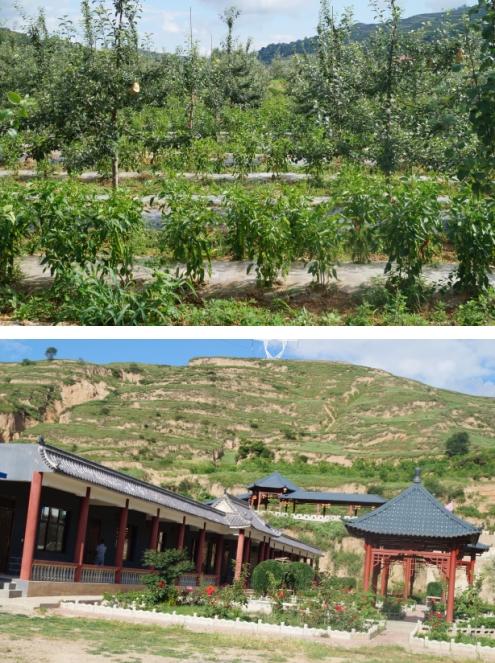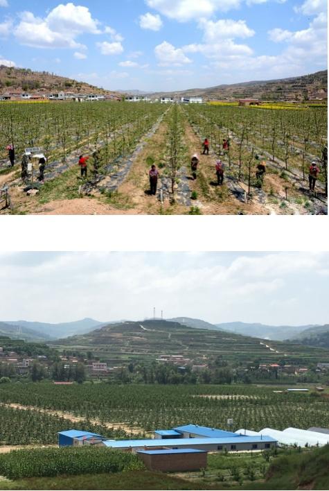 5. 张家川县龙山镇休闲农业示范点:该示范点位于龙山镇西部的马河、四方、李山3村交界处,距龙山镇6.3公里,现占地面积2881亩,分为六个功能区,花牛苹果园、设施樱桃园、育苗园、川区矮密苹果园、山地矮密苹果园、管理区。该示范点是集果品生产、贮藏、运输、科技示范、生态旅游为一体的现代农业示范点。示范点已建优质苹果果园800亩、大樱桃200亩,苹果、大樱桃已经挂果进入初果期,年产苹果30万斤、大樱桃1万斤。育苗园占地面积115亩、大棚11座,主要以培育矮化苹果苗为主,采用日本圆叶海棠为扦插砧木,接穗为日本荣华富士,年出优质矮化苹果苗8万株、樱桃苗6万株。园区种植规模逐年扩大,陆续又建成了占地650亩的川区矮密苹果园和占地600亩的山地矮密苹果园,主栽品种为玉华早富、瓦利短株、俄矮2号。示范点内就地年输转劳动力961人,带动的种植户户均纯收入达5040元,人均纯收入达1008元,通过发展果树种植业已实现脱贫农户465户2178人,对农民增收的带动作用十分明显,已成为农村脱贫致富的重要支柱产业。示范点的建设,进一步完善园区基础设施条件,产业规模逐年扩大,带贫能力逐年增强,科技应用水平不断提高,管理运行机制逐步规范,经济社会生态效益显著提高。