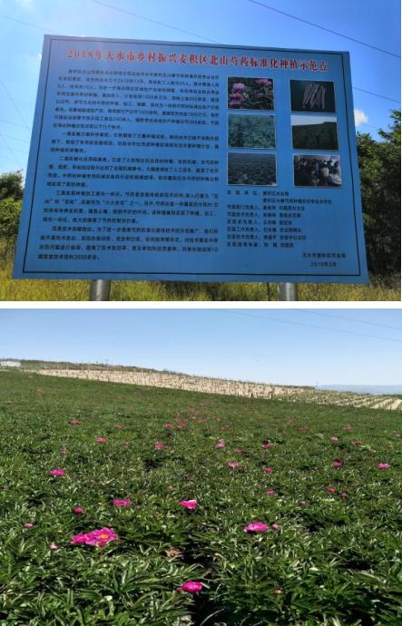 2. 麦积区北山芍药标准化种植示范点: 该示范点位于麦积区道北办事处寨子村,芍药标准化生产示范基地面积达到500亩,配套建立中药材储藏仓库,烘干房等生产设施,购置药材切片机等初级加工设备,把示范基地建成集种植、加工、观光为一体的标准化中药材生产示范基地,年产量达150吨,产值 225万元。目前,在道北北山共流转土地512亩,已全部种植白芍赤芍,建成了中药材初级加工厂房及储藏库,带动20余户贫困户常年在基地务工。开展农村实用人才技术培训3场,累计培训96人次,发放技术资料200份。配合测土配方施肥技术、水肥一体化技术、农田病虫害综合防治技术、生物菌肥的使用推广,达到了各项技术相互补充、相互促进的示范效果,实现了高标准的建设要求。示范点内综合配套措施运用率达到90%以上,解决了单一技术增产能力有限的局限性。