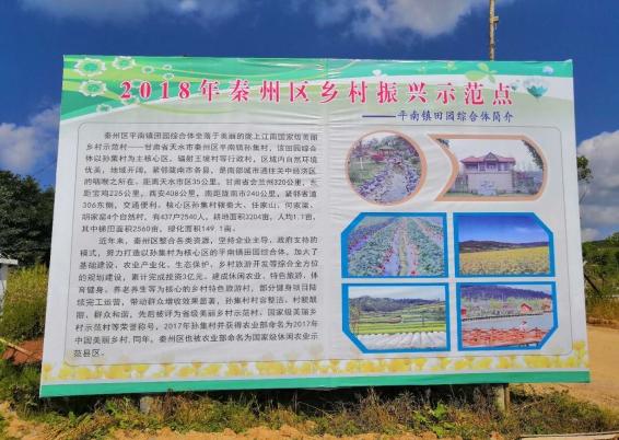 1. 秦州区平南镇田园综合体示范点:该示范点位于秦州区平南镇孙集村,以孙集村为核心,辐射带动王坡村等行政村,该区域自然环境优美,地域开阔,交通便利。该示范点先后被评为省级美丽乡村示范村、国家级美丽乡村示范村、中国美丽乡村等荣誉称号。目前,该示范点累计完成投资3亿元,建设连栋温室1座、采摘大棚4处、鱼塘2处、日光温室12座,占地450亩开心农场1处,配套建设水电路和亮化美化设施及占地150亩滑雪场1处、游泳馆1栋,2500平米餐饮生态园等配套设施。预计到2020年,实现年接待游客600万人次,年销售总额达10000万元。示范点的建设将平南镇孙集村打造成集产业开发、休闲观光为一体的生态美、环境好、产业兴的田园综合体,加快平南镇风情小镇建设,带动1000户村民发展乡村旅游业,户均增收1.5万元。