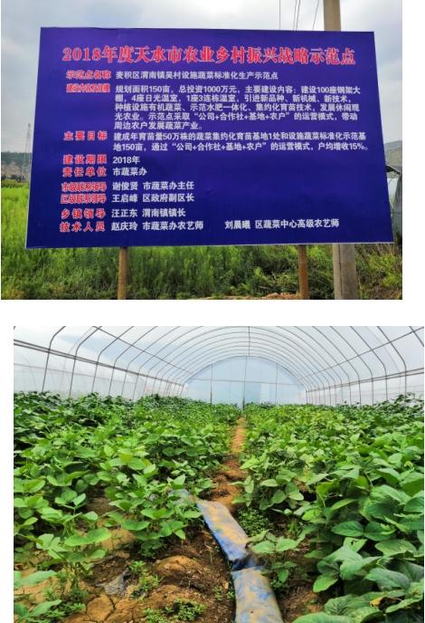 3. 麦积区渭南镇设施蔬菜标准化生产示范点:该示范点位于渭南镇吴村,计划投资1000万元,建设钢架大棚100座、日光温室4座、联栋温室1座,示范水肥一体化、集约化育苗、标准化生产等技术。建成年育苗50万株的蔬菜集约化育苗基地1处和设施蔬菜标准化生产示范基地150亩,通过“合作社+基地+农户”模式,带动周边农户发展蔬菜产业,户均增收15%。目前,该示范点已完成投资1000万元,建成设施蔬菜标准化生产示范基地150亩,钢架大棚100座,日光温室4座、联栋温室1座,配备水肥一体化、集约化育苗、标准化生产等技术设备,年育苗量达到50万株以上。示范店内引进推广芹菜、航椒、陇椒等7个名优新品种,主导新品种覆盖率达到95%以上。同时,着力加快绿色无公害产地认定、产品认定和商标注册,增强了蔬菜产品市场竞争力。示范点的建设,使该区域蔬菜种植面积不断扩大,科技含量不断提高,品种体系逐步优化,蔬菜基地示范带动作用日益显著。