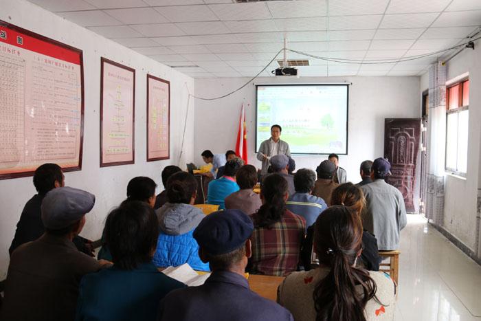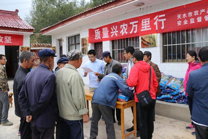 远门乡赵渠村地处清水县西北干旱山区,远离城市污染,周围环境优美,是生产优质农产品的天然宝地。在种子发放现场,围绕“质量兴农万里行”的活动主题,帮扶组首先对前来领种子的村民进行了农产品质量安全知识集中培训,发放了禁限用农药名单、农产品质量安全违法案例、标准化栽培、“三品一标”认证等方面的科技宣传资料400余份,接受群众咨询50人次,指导农民科学合理使用农资,生产优质可信赖的农产品,鼓励他们积极参加“三品一标”农产品认证,提高当地优质农产品的市场占有率,走绿色兴农、品牌兴农、质量强农的路子,加快农民脱贫致富步伐。培训结束后,帮扶组按照培训人员名单逐一将种子发放到每位农民手中,并将部分种子送到了行动不便的农户家中。随后,帮扶组又来到冬油菜帮扶试验田,对已出苗的油菜进行了放苗、覆土工作。