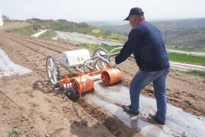 现场测试表明,这些电动农机节能环保、安全可靠,能够实现玉米平铺膜和播种,但仍然存在以下主要问题:一是铺膜机开沟铲小,开沟深度达不到农艺要求;二是覆土器小,膜边覆土厚度、宽度偏小,漏覆土程度偏高;三是该铺膜机和播种机仅适应平铺膜种植模式,不适应玉米全膜双垄沟的种植。