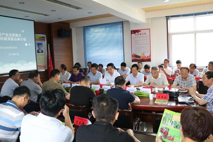 基地观摩后,天水市农科所副所长逯文生主持召开了座谈交流会,天水市农科所蔬菜试验站站长高成芳研究员重点推介了经中华人民共和国农业部登记、甘肃省农作物品种审定委员会认定的新品种10个,其中辣椒新品种9个、黄瓜新品种1个。