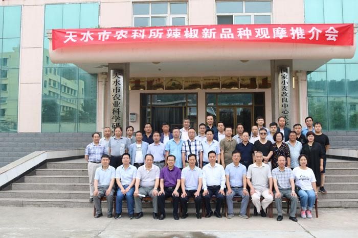2018年7月3日,天水市农业科学研究所在西十里试验站举办辣椒新品种观摩推介会,会议邀请天水市农业局、天水市科技局业务管理部门和江苏绿港现代农业发展有限公司、杨凌天舟农业高科技有限公司、杨凌亿阳种业科技有限公司、西安世阳种苗有限公司、兰州东平种业有限公司、兰州国锋种业有限公司、武山利农科技有限责任公司、武山田园春农业科技有限公司、甘谷县方圆农业发展有限责任公司等9家省内外种子企业负责人以及市、县区蔬菜、经作业务推广部门负责人,县区农民专业合作社、种植大户等约50人参加了本次观摩推介会。