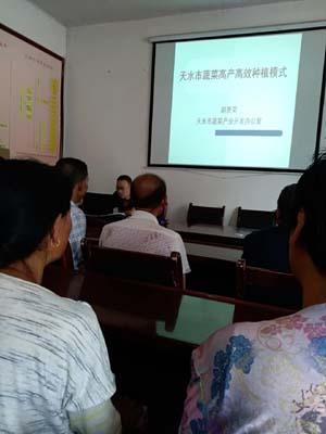 为促进帮扶村产业结构调整,推进产业扶贫,今年年初市蔬菜办积极指导清水县远门镇安业村、庙台村兴建钢架大棚,帮助有种植蔬菜意愿的贫困户发展高原夏菜。针对贫困群众种植技术缺乏的问题,市蔬菜办于2018年7月20日,在安业、庙台、林峡第一书记协助下,对3村20多户蔬菜大棚种植户在安业村集中进行了蔬菜种植技术培训,现场解答种植户提出的问题,指导蔬菜种植户合理安排茬口、科学选用品种、综合防治病虫害。通过此次集中培训,进一步提高了3村蔬菜种植户蔬菜种植技术,增强了他们发展蔬菜产业信心和决心。期间,市蔬菜办先后为3村蔬菜种植户捐赠价值1.2万元的塑料棚膜和地膜,发放蔬菜种子200多袋、宣传资料60份。