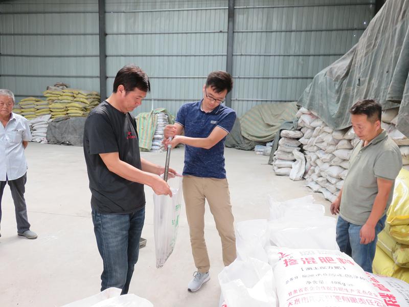 根据农业农村部办公厅关于开展2018年全国肥料监督抽查的通知(农农办〔2018〕12号)安排和部署,2018年7月25日,农业农村部肥料质量 监督检验测试中心(郑州)对我市的肥料生产企业和农资市场的复混肥料、掺混肥料和大量元素水溶肥料进行抽样。在省耕地质量建设管理站、市土肥站和麦积区农技中心相关人员全程陪同下,抽检组一行三人深入我市麦积区有代表性的农资市场和天水市青天化肥有限责任公司抽取了2个复混肥料和掺混肥料样品、2个大量元素水溶肥料样品。