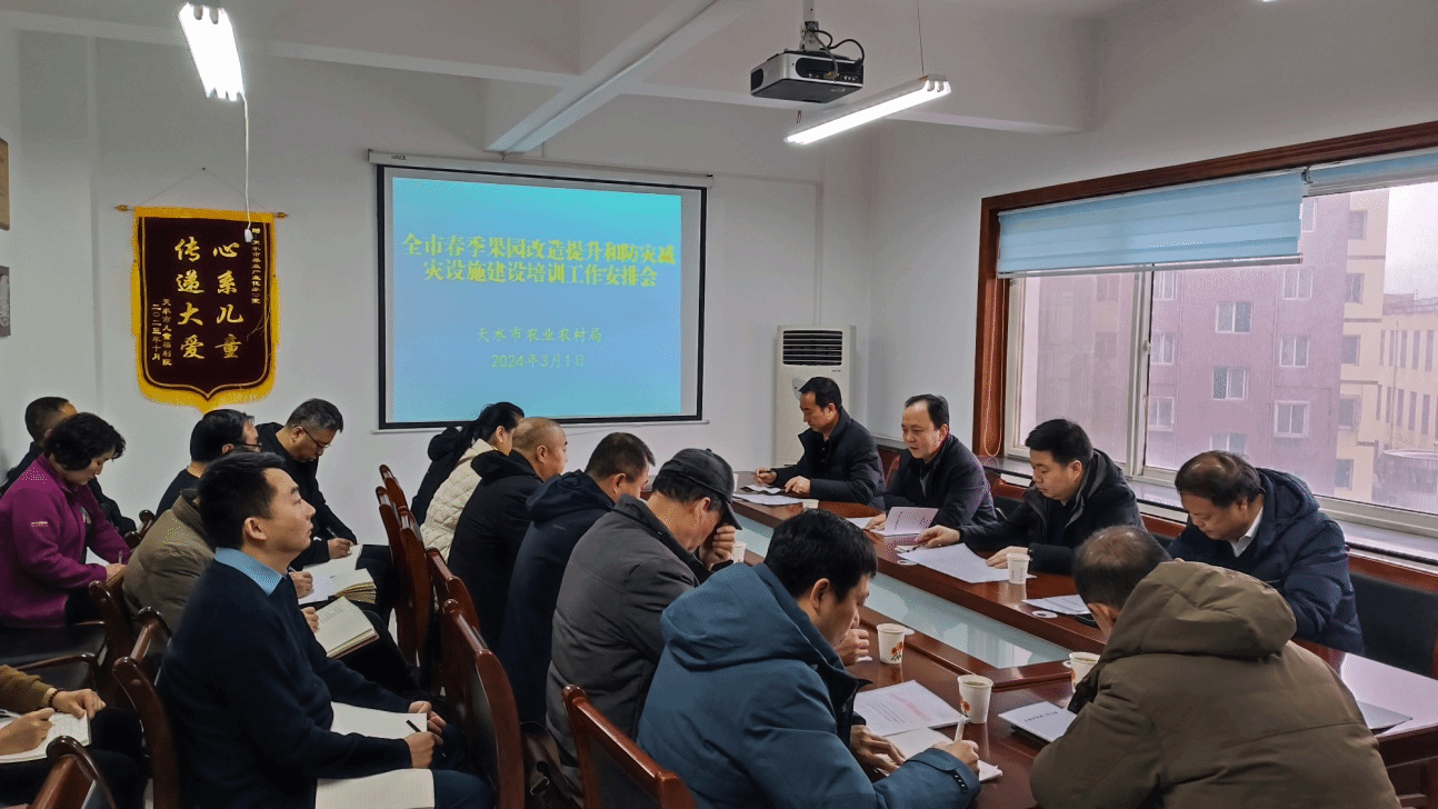 3月1日,市农业农村局组织召开全市春季果园改造提升和防灾减灾设施建设宣传培训工作安排会,市果业产业化办公室、市果树研究所和市级果园改造提升工作专家组及服务队成员参加会议。