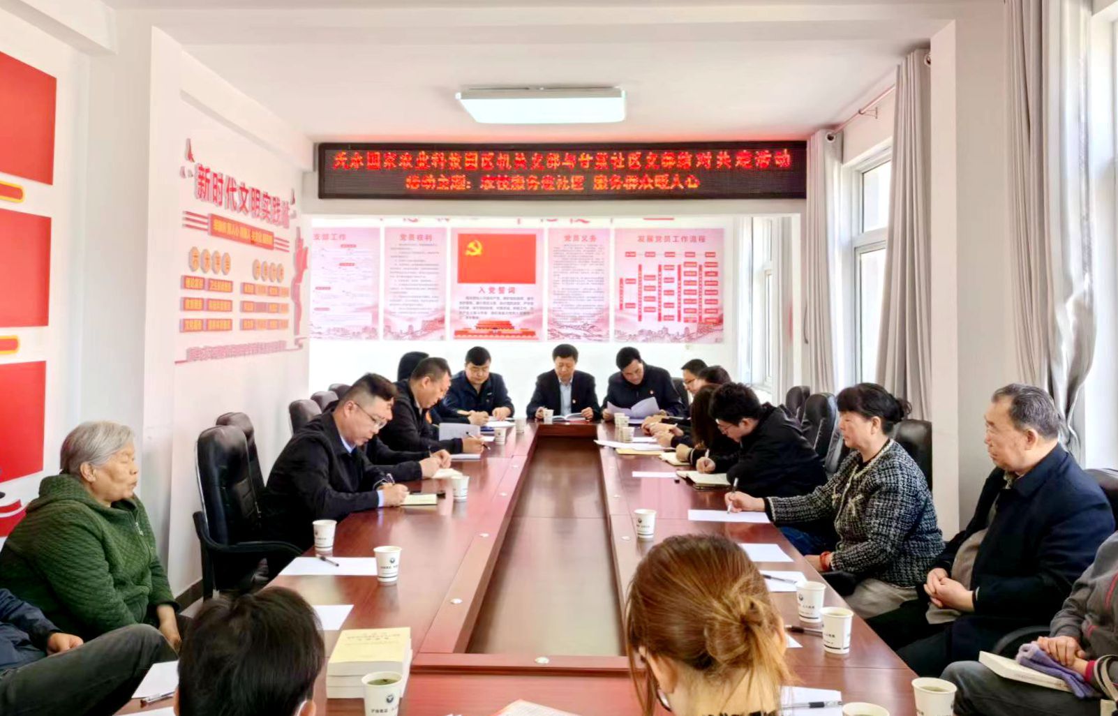 会议强调,要充分认识社区工作的重要性,更要强化结对共建活动的针对性,在共建活动中要建立健全“三种机制”:一是组织结对,建坚强堡垒。充分发挥双方党支部的自身优势,互相交流党建工作经验,共享党建资源,共同研究解决党建工作中存在的问题和不足;结合党建主题活动,轮流组织上党课、开展联合主题党日活动、党员联谊等活动,增强党组织的凝聚力和向心力,筑牢战斗堡垒。二是党员结对,建先锋模范。结对双方党员互帮业务,共同查找工作中的差距和不足,制定赶超措施;发挥双方人才和技术优势,通过组织交互式培训等方式,共同提升专业技能和综合素质;针对急难险重任务,联合开展工作,引导党员在生产、生活中攻坚克难、勇当先锋。三是文化结对,建和谐氛围。共同开展经常性的思想教育,筑牢党员共同的思想基础;共同搭建文化传播平台,营造特色精品文化的良好氛围;共同开展典型选树,挖掘身边的先进典型,让党员学有榜样、赶有目标;充分发挥园区在政策、技术、信息等方面优势,对甘棠社区困难党员和群众进行实用技术、市场信息业务知识等方面的服务和指导,协调驻园企业设置就业绿色通道,增加群众收入,增强发展信心。