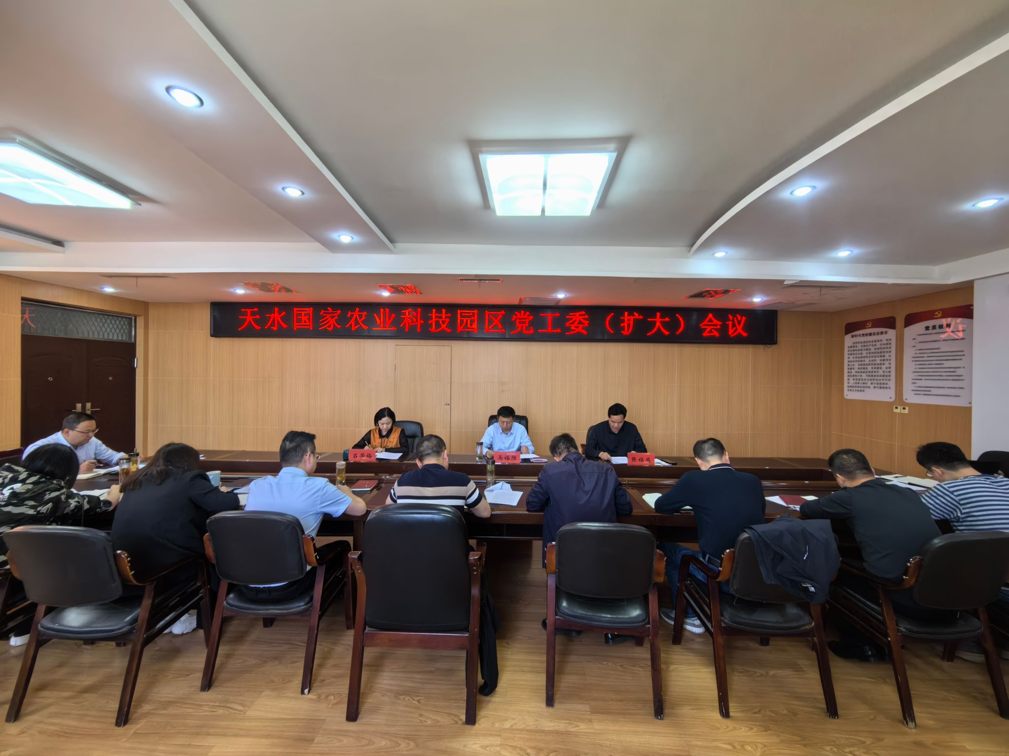 4月17日下午,天水国家农业科技园区召开党工委(扩大)会议,传达学习了习近平总书记关于党纪学习教育的重要讲话和重要指示精神、中共中央办公厅《关于在全党开展党纪学习教育的通知》精神,传达贯彻了中央、省委、市委关于党的建设工作领导小组会议精神,审议了《天水国家农业科技园区开展党纪学习教育工作方案》,专题部署了园区党纪学习教育工作。园区党工委书记、管委会主任马福胜同志主持会议并讲话。