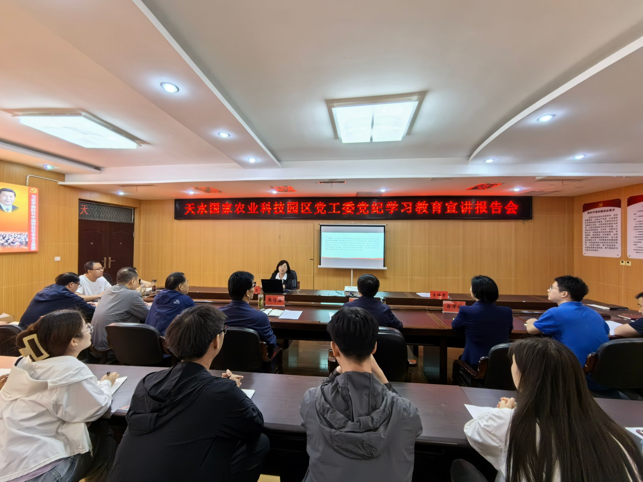 6月6日上午,天水国家农业科技园区党工委召开党纪学习教育专题宣讲会,园区管委会全体党员干部和驻园企业党员30余人参加学习。