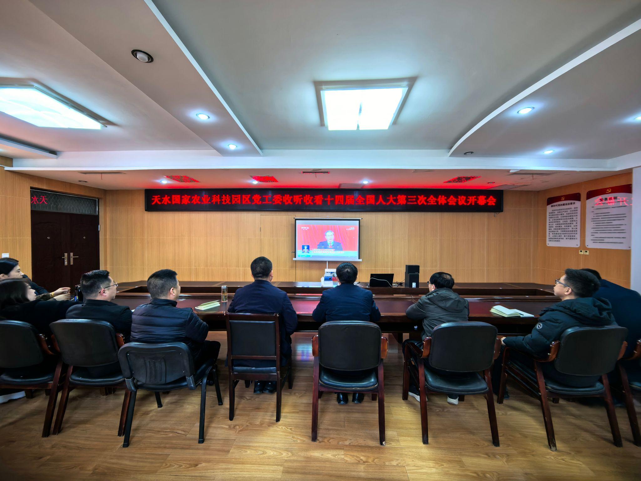 3月5日上午九点,十四届全国人大三次会议在北京人民大会堂隆重开幕。天水国家农业科技园区党工委组织全体干部职工收听收看了开幕会,认真聆听了国务院总理李强向大会所作的政府工作报告。