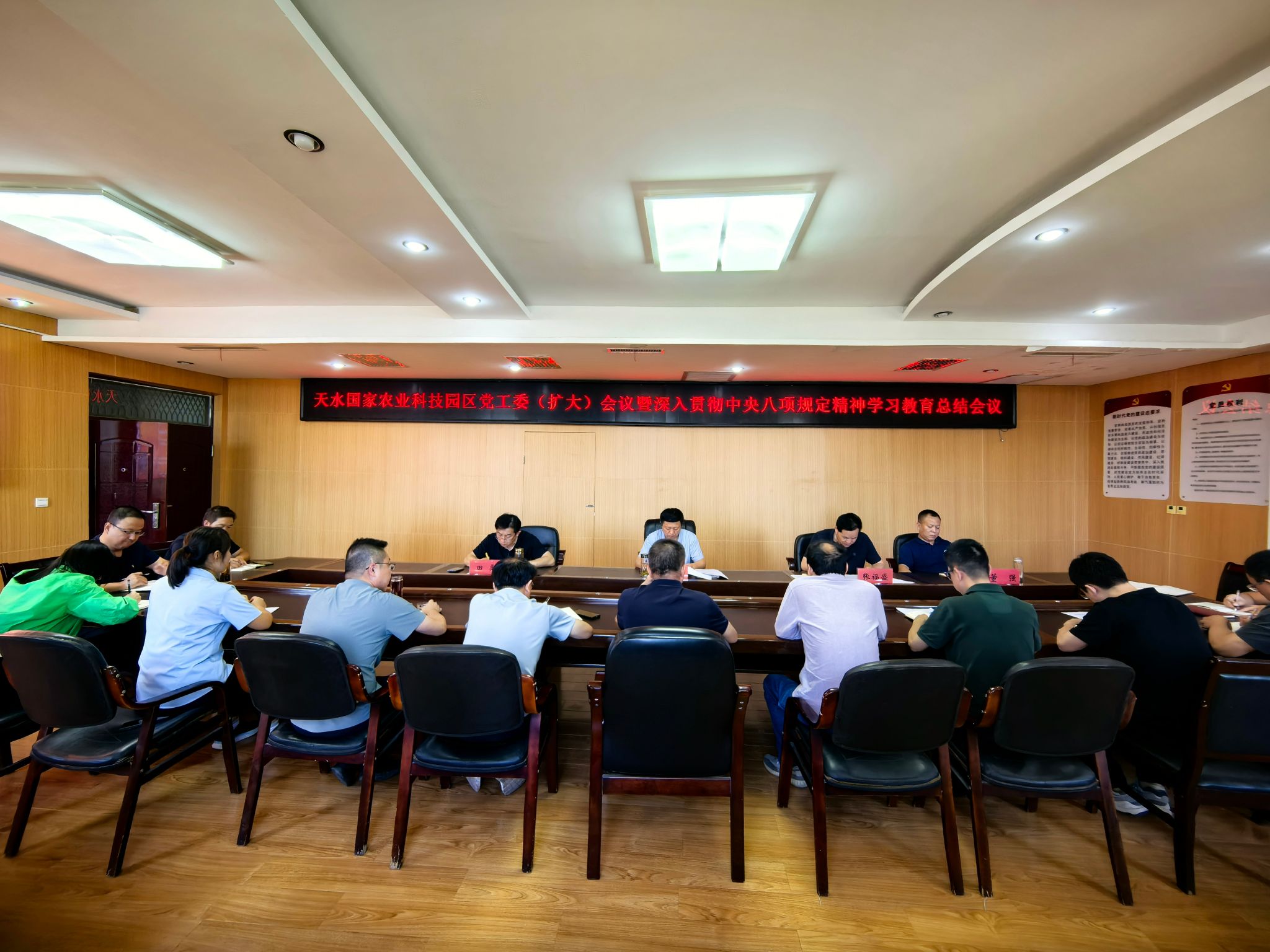 9月12日,天水国家农业科技园区召开党工委(扩大)会议暨深入贯彻中央八项规定精神学习教育总结会议,传达学习习近平总书记关于作风建设的重要指示精神和中央、省市委党的建设工作领导小组会议精神,总结园区学习教育开展情况,研究部署下一步巩固深化学习教育成果、推进作风建设常态化长效化工作。