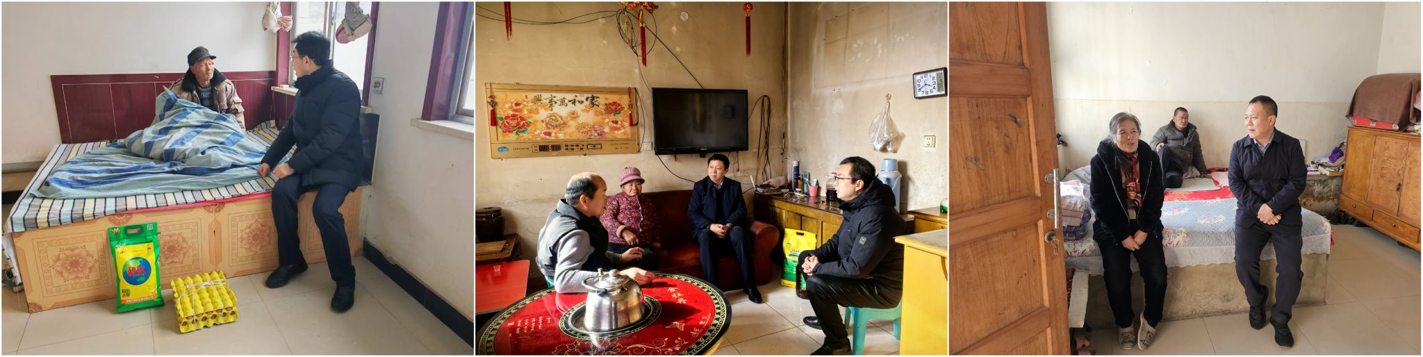 走访过程中,结对干部们秉持着“走亲戚、拉家常、解难题”的态度,与关爱对象及其家人围坐一起,亲切交谈、细致询问。不仅详细了解每个家庭在粮食储备、取暖保障、收入来源、子女就学、医疗报销和政策落实等方面的具体情况,更认真记录他们面临的现实困难和迫切需求。干部们耐心倾听他们的心声与期盼,针对反映的医疗、就业、教育等实际问题,能够现场协调的立即帮助沟通解决;需要后续跟进的,逐一建立台账、明确责任。时值寒冬,干部们尤为牵挂群众的安全问题,反复检查取暖设施,叮嘱用火、用电、用煤安全,重点宣传预防一氧化碳中毒知识和应急措施,确保排查隐患、防范风险,守护好每一个家庭的生命财产安全。此外,结对干部还根据实际需要,为关爱对象送上了精心准备的米面粮油、新鲜鸡蛋等慰问品,在传递物质支持的同时,更送上了真挚的新春祝福。干部们以鼓励的话语,引导关爱对象树立信心、保持积极心态,勇敢乐观地面对生活挑战。