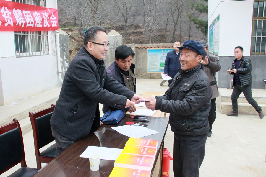 会后,赵跟明一行为吊山村村民送去2017年春季建园花椒苗木补助资金,上门看望慰问了贫困户,察看了村里新建的文化广场。