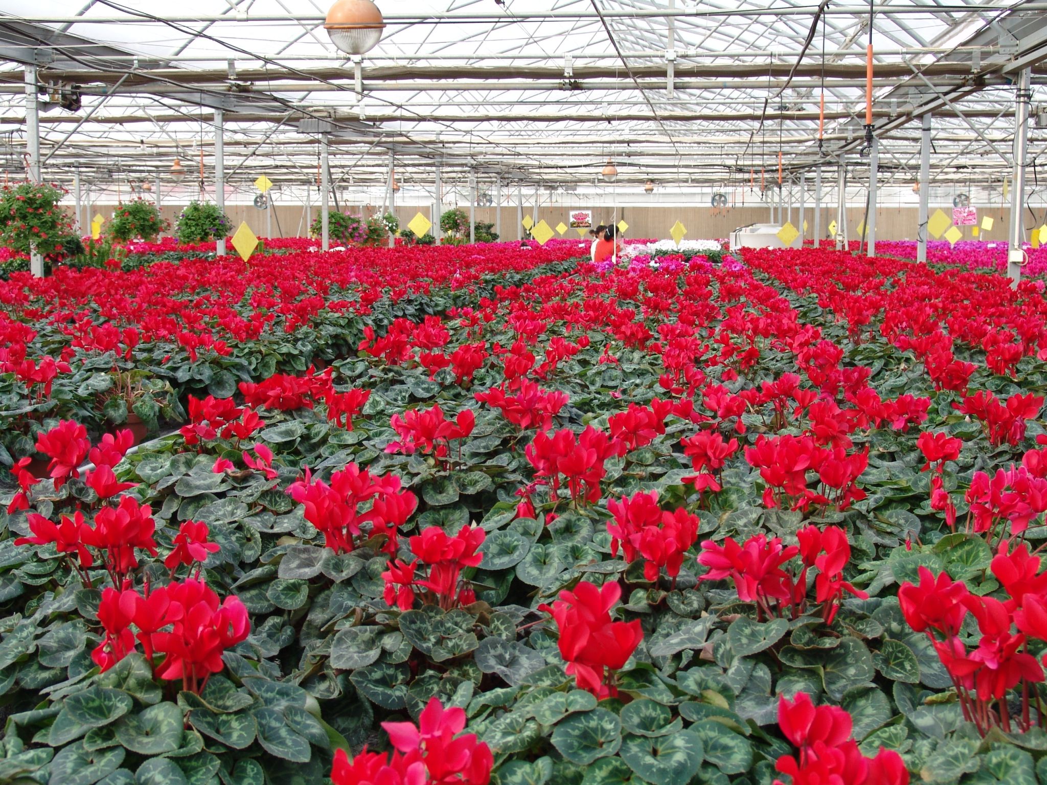 入秋后,天水国家农业科技园区花卉种植大棚内,各色仙客来竞相绽放,宛如一片绚烂的花海,吸引了众多客商前来考察采购,订单量较去年同期增长20%以上。目前,园区内仙客来主要热销品种达12个,依托现代化智能温室、自动苗床、保温覆盖、喷滴灌及水肥一体化等先进设施,实现了对温度、湿度、光照等环境因子的精准调控。科学的生产管理与精细化养护,使得仙客来平均花期延长至5个月以上,优质商品花率达到95%,深受市场青睐。