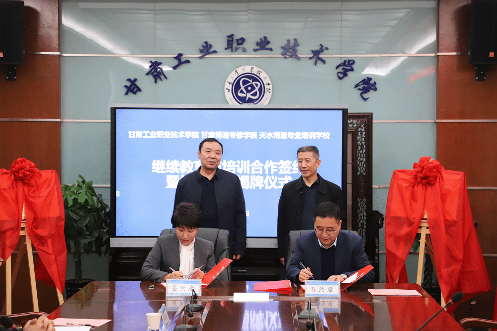 3月11日,甘肃工业职业技术学院、甘肃博通专修学院、天水博通职业培训学校继续教育与培训合作签约仪式暨培训基地揭牌仪式在甘肃工业职业技术学院举行。