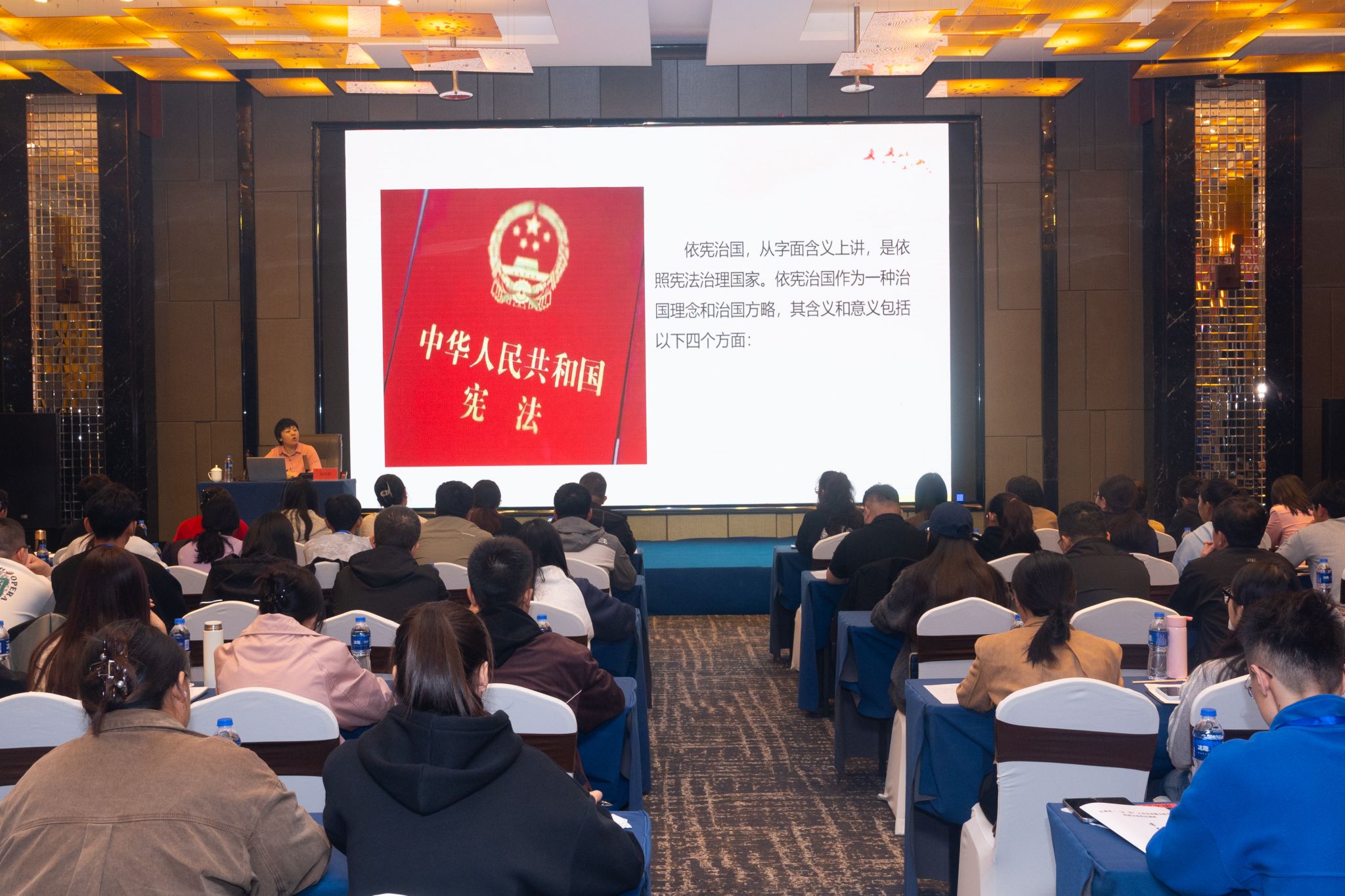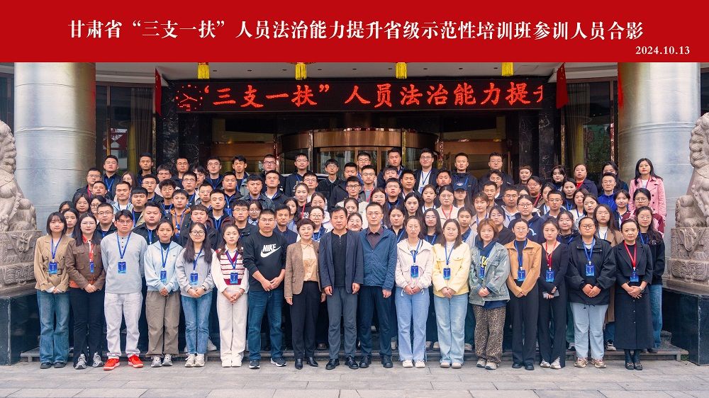 2024年10月13日上午,甘肃省“三支一扶”人员法治能力提升省级示范性培训班在天水市举行开班仪式,省高校毕业生就业办公室主任赵斌、副主任李冰出席会议并讲话,市人社局副局长谢辉致辞,相关市州带队领导、新招募“三支一扶”人员、部分在岗人员共计100余人参会。