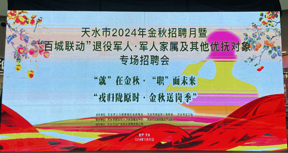 10月26日,市人社局联合市退役军人事务局共同举办天水市2024年金秋招聘月暨“百城联动”退役军人·军人家属及其他优抚对象专场招聘活动。此次活动旨在深入贯彻《中共中央 国务院关于实施就业优先战略促进高质量充分就业的意见》精神,全面落实省、市党委政府关于就业工作的一系列安排部署,帮助劳动者求职和企业招聘,促进人力资源供需匹配,推动全市退役军人、优抚对象及军人家属等群体高质量充分就业。