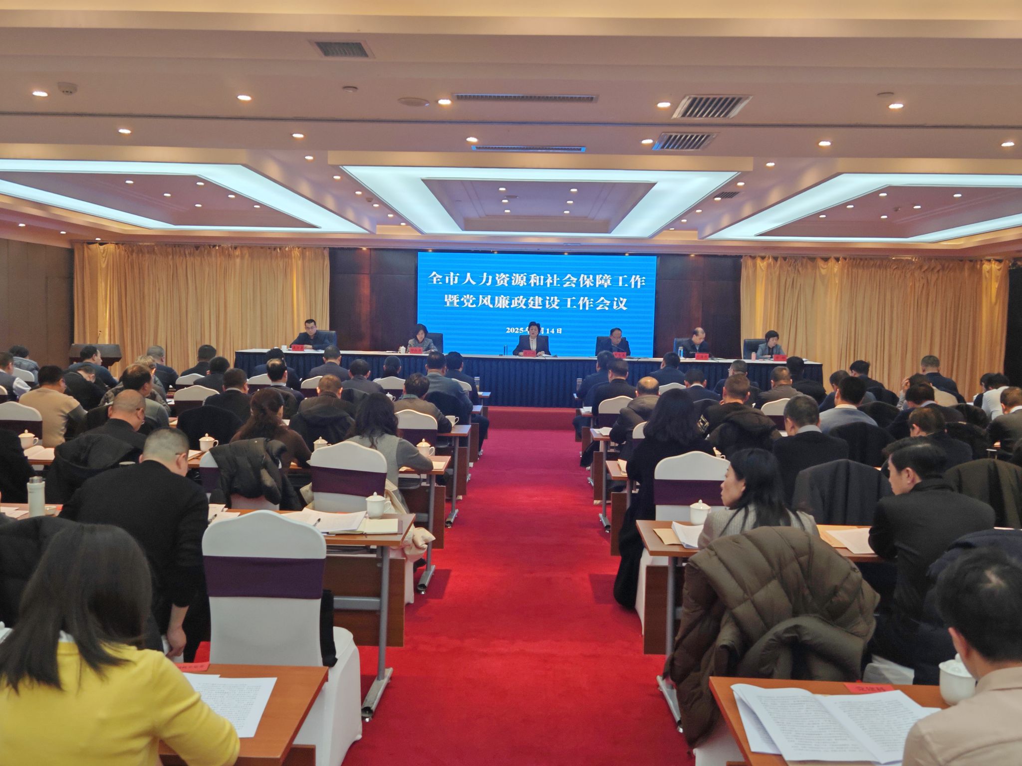 2月14日,全市全市人力资源和社会保障工作暨党风廉政建设工作会议召开。会议以习近平新时代中国特色社会主义思想为指导,深入学习贯彻党的二十大和二十届二中、三中全会精神,全面贯彻落实习近平总书记视察甘肃重要讲话重要指示精神,传达中央、省委、市委经济工作会议、纪委全会和全国、全省人社会议精神,总结工作,分析形势,安排部署2025年重点任务。市委书记冯文戈,市委副书记、市长刘力江分别对全市人社工作作出批示,充分肯定2024年取得的成绩,对做好今年工作提出了明确要求。市政府副市长汪小娟出席会议并讲话,市纪委监委派驻市委组织部纪检监察组组长柳红果对全市人社系统党风廉政建设工作做出安排,市人社局党组书记、局长剡海明作工作报告。