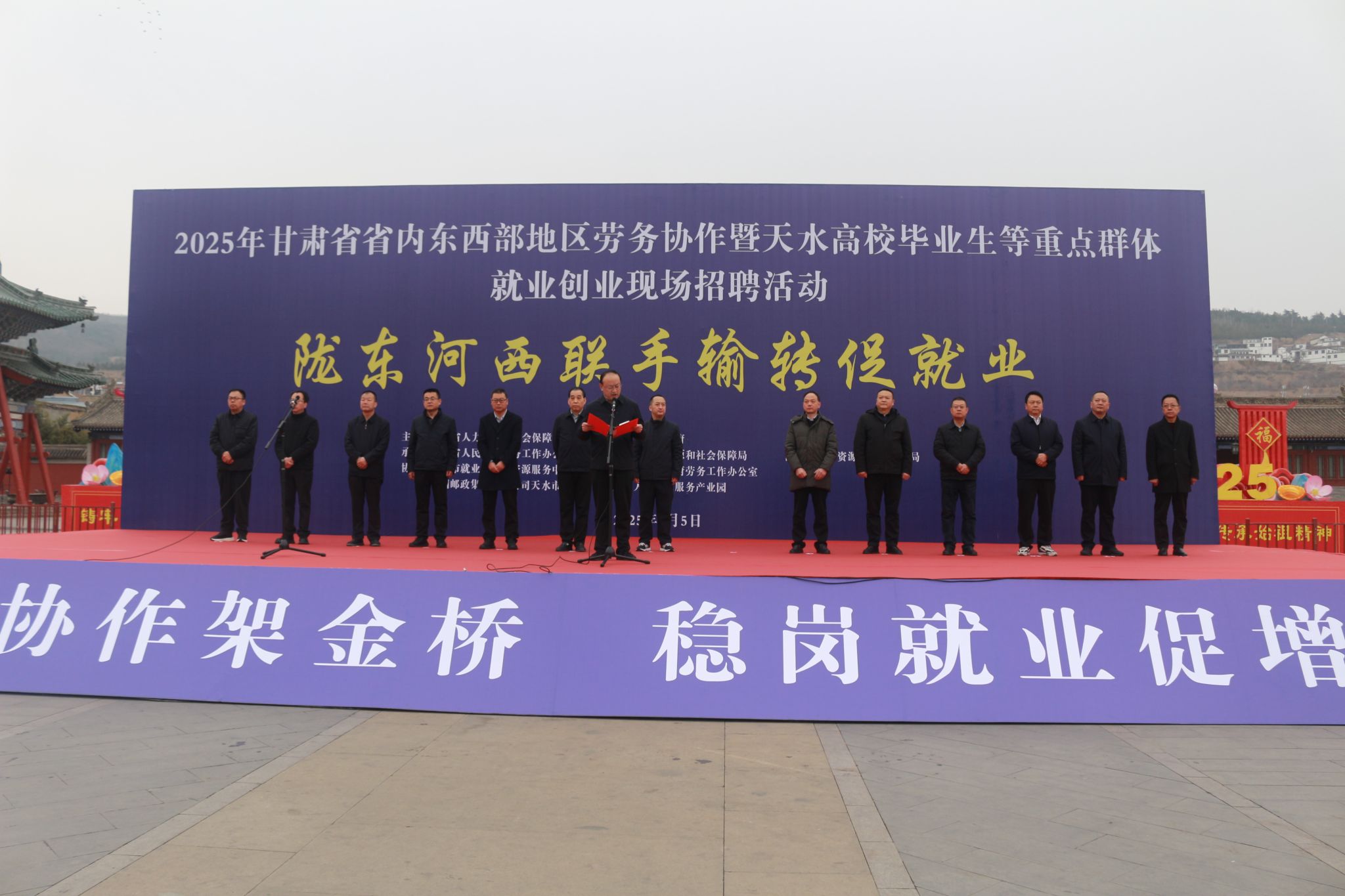 为深入学习贯彻党的二十大和二十届二中、三中全会精神以及习近平总书记视察甘肃重要讲话重要指示精神,认真落实把“高质量充分就业作为经济社会发展优先目标”和省市系列就业决策部署,全力帮助高校毕业生、农民工等重点群体高质量充分就业,3月5日上午,省内东西部地区劳务协作暨天水高校毕业生等重点群体就业创业现场招聘活动在天水市伏羲庙广场举行。