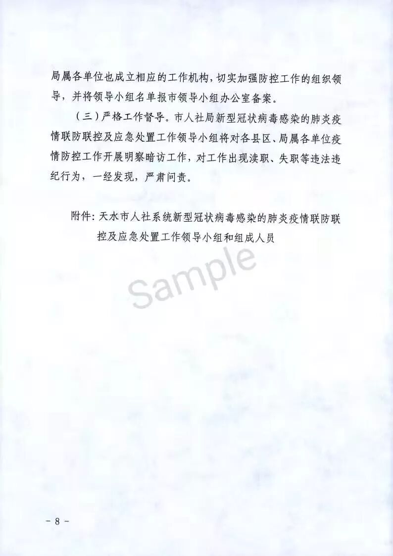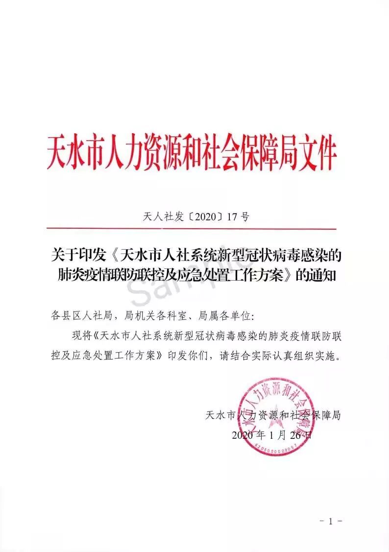 下一篇: 天水市人力资源和社会保障局关于人力资源市场服务机构做好新型冠状病毒感染的肺炎疫情防控有关工作的通知