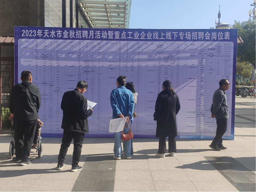 为深入贯彻落实党的二十大精神,扎实推进学习贯彻习近平新时代中国特色社会主义思想主题教育和“三抓三促”行动,着力解决我市重点工业企业人才需求,切实推动高校毕业生等重点群体实现更加充分更高质量就业,10月28日,由市人社局等8部门联合举行的2023年天水市金秋招聘月活动暨重点工业企业线上线下专场招聘会在天水人力资源服务产业园成功举办。市人社局党组成员、副局长刘宇、市就业和人力资源服务中心主任聂卫东和市委人才办、市民政局、市退役军人事务局、市工信局、市政府国资委、市总工会、市工商联相关领导现场指导招聘会,市内有用工需求的重点工业企业,产业园入驻企业代表,甘肃机电学院、甘肃林职学院学生代表,各类求职人员参加招聘会。