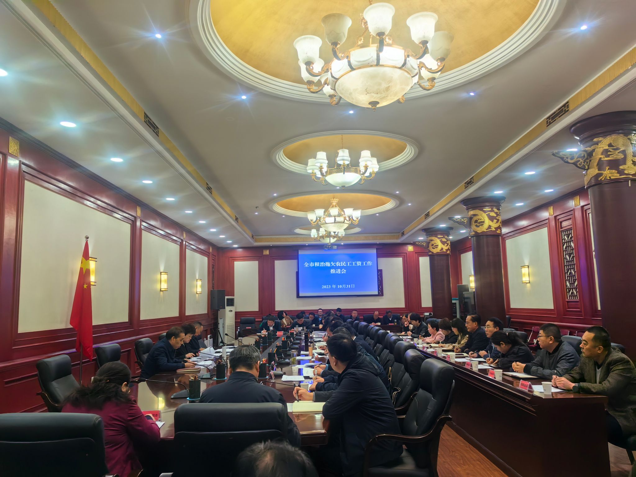 为认真贯彻落实国家和省、市关于根治欠薪工作的决策部署,以及全省根治欠薪工作调度推进会议精神,扎实推进我市根治拖欠农民工工资工作,确保春节前农民工按时足额拿到工资切实保障好农民工合法权益。10月31日,市政府组织召开全市根治拖欠农民工工资工作推进会。会议由市政府副秘书长、市政府根治拖欠农民工工资工作领导小组副组长冯荣主持,市政府副市长、市政府根治拖欠农民工工资工作领导小组组长汪小娟出席。各县(区)分管县(区)长、人社局、住建局局长、劳动保障监察机构负责人;经开区管委会分管负责同志、组织人事局、建设管理局负责人;市政府根治拖欠农民工工资工作领导小组副组长、成员单位分管负责同志;市政府根治拖欠农民工工资工作领导小组办公室工作人员参加会议。