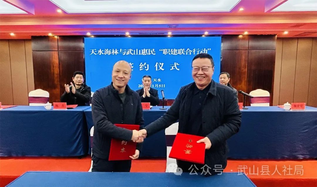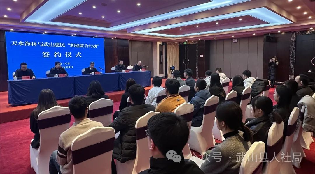 新年新气象,奋发新作为。为深入贯彻党中央和省、市关于大力发展技工教育决策部署,探索高质量开展职业技能培训新路径,武山县人社局不断拓宽工作思路,择优推荐优势职业技能培训学校,通过优势互补,强强联合,实现优质培训资源互利共享,1月5日,携武山县惠民职业技能培训学校与天水海林技工学校在天水宾馆成功举行了“职建联合行动”签约仪式,天水市人社局党组成员、副局长刘宇出席仪式并讲话。