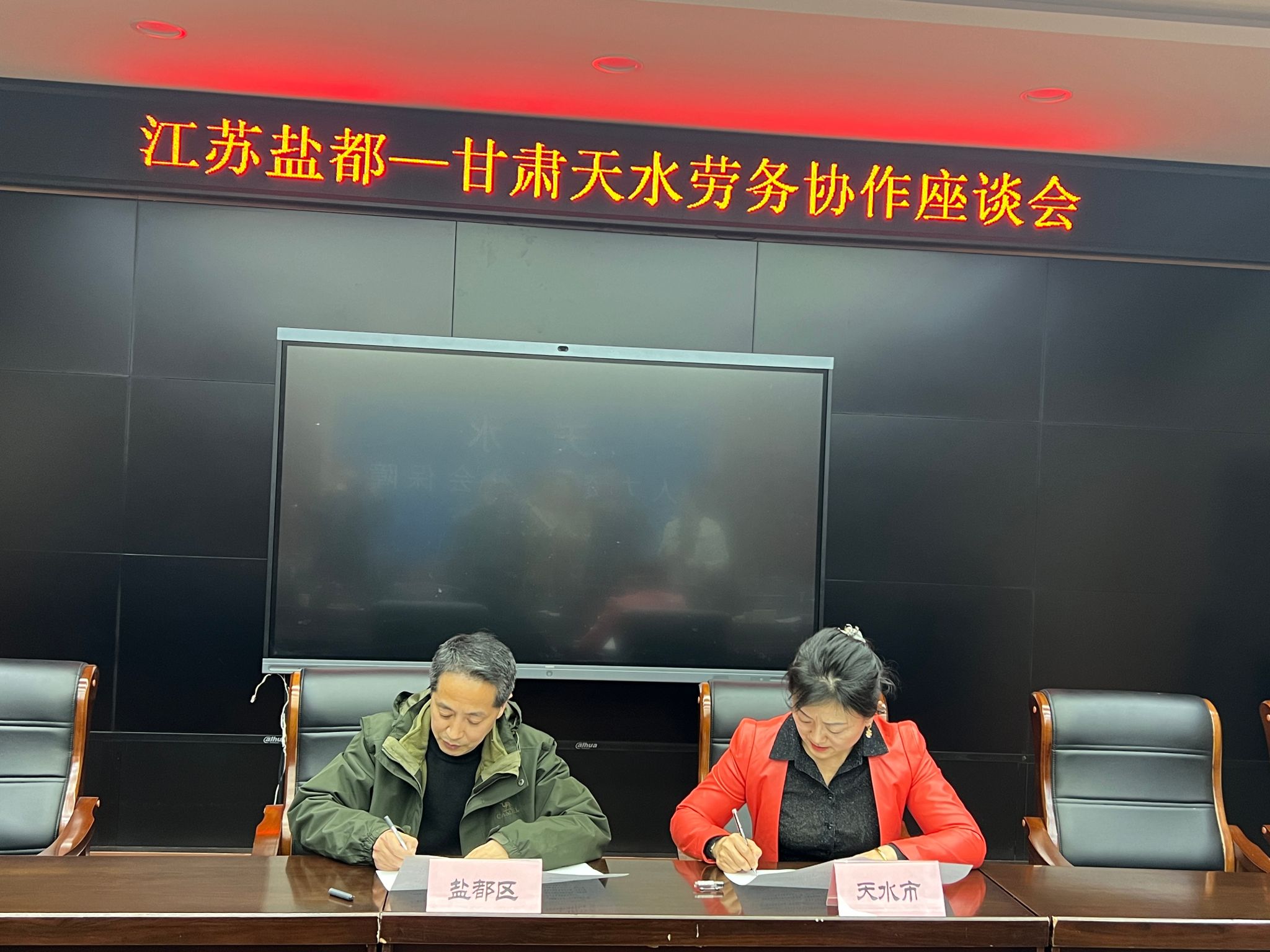 3月20日,江苏省盐城市盐都区劳动就业中心来我市考察劳动力资源现状和劳务输转情况,双方召开了座谈会。会上,天水市劳务办副主任郭娟介绍了我市农村劳动力转移就业情况,盐都区劳动就业中心副主任孙建家介绍了盐都区劳动力概况、企业用工需求及工资待遇情况,双方就劳务合作进行了交流发言。双方本着服务地方经济发展、聚焦富民增收、提升劳务输转组织化程度的原则,以促进劳动力高质量就业为出发点,建立劳务协作平台,实现跨区联动,经双方协商达成并签订了劳务合作协议,定期不定期开展信息交流沟通、劳务输转等活动。会后组织参观了天水人力资源服务产业园。天水市就业和人力资源服务中心、天水人力资源服务产业园、甘肃人力、甘肃五角星人力资源公司等工作人员同时参会。