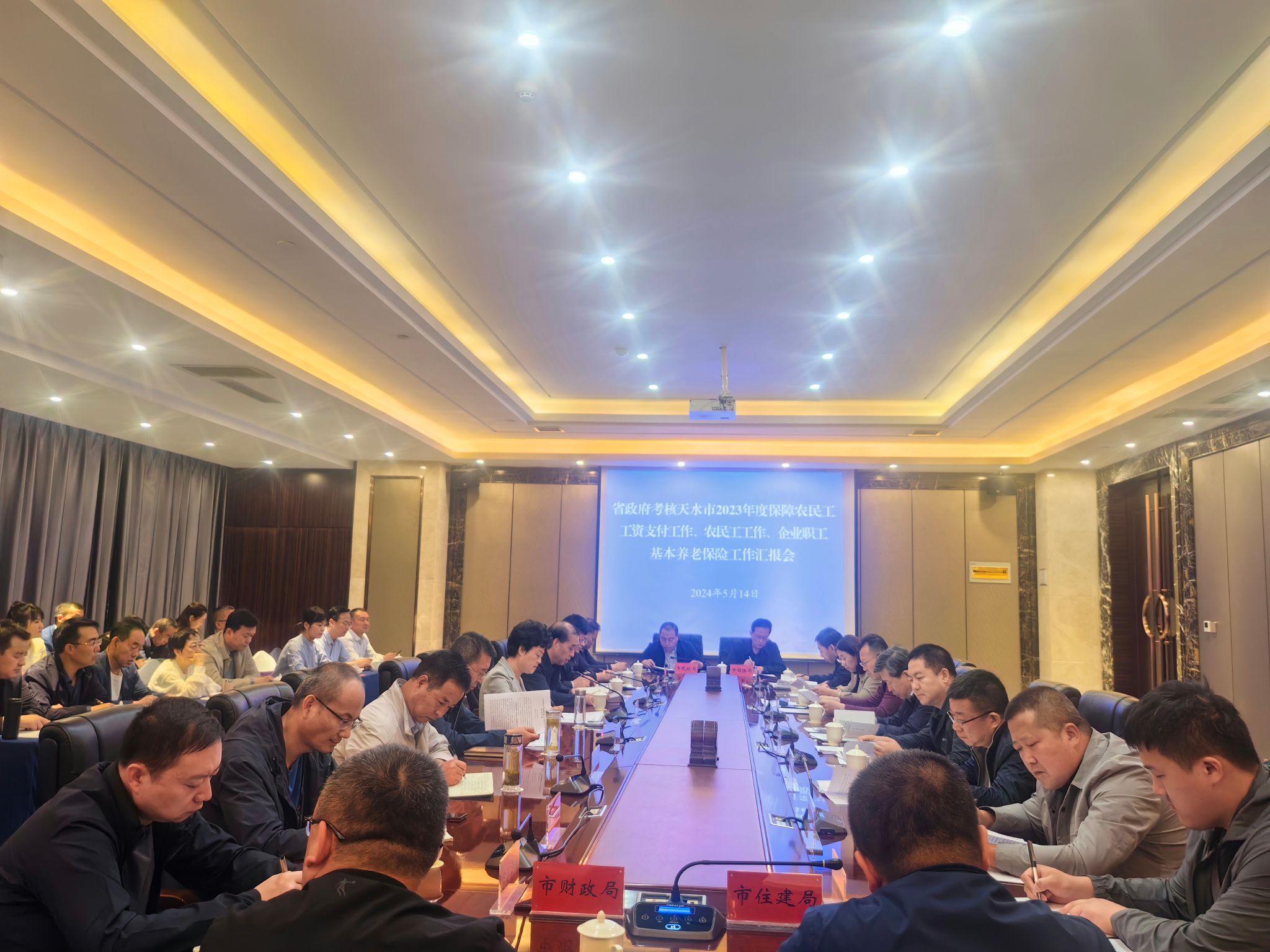 5月14日上午,省政府考核天水市2023年度保障农民工工资支付、农民工工作、企业职工基本养老保险工作汇报会召开。省政府第三考核组组长、省住建厅二级巡视员王光照等考核组领导出席会议并提出考核要求,会议由市政府副市长汪小娟主持,市人社局主要负责人,各成员单位相关负责人参加考核汇报会。