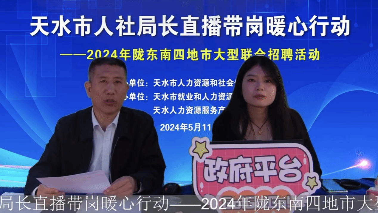 启动仪式后,天水市人社局党组成员、副局长刘宇进入“天水市人社局长直播带岗暖心行动——2024年陇东南四地市大型联合招聘活动”直播间。在线上对10余家市内外优质企业200多个岗位进行网络推介,向即将毕业的高校学生、求职者和广大网友介绍了用人单位的岗位信息和薪资福利待遇等。解答了直播间网友的留言提问,提供相关就业建议,根据网友的需求“面对面”、 “心贴心”、“屏对屏”提供就业服务,为有求职意愿者找到心仪的工作、满意的岗位架起和用人单位双向沟通的“网桥”。