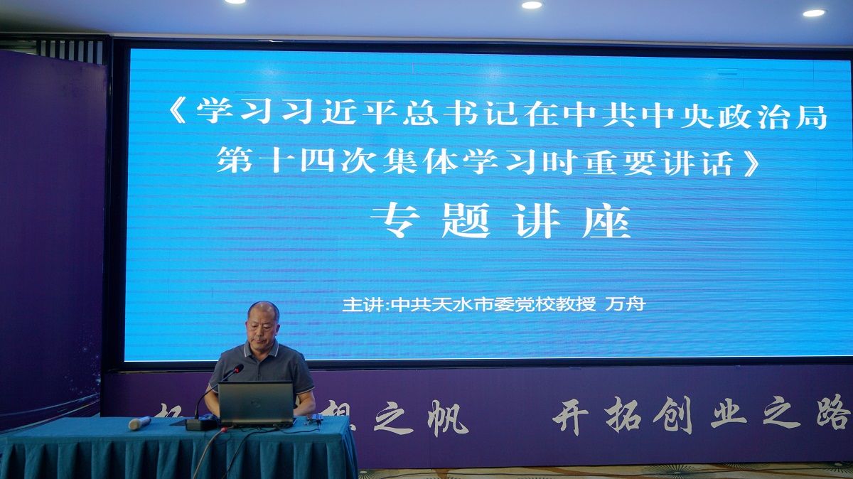 会议邀请市委党校教授、《天水行政学院学报》编辑部主任万舟围绕习近平总书记在中共中央政治局第十四次集体学习时的重要讲话精神,作题为《经济运行与就业创业》的专题讲座。