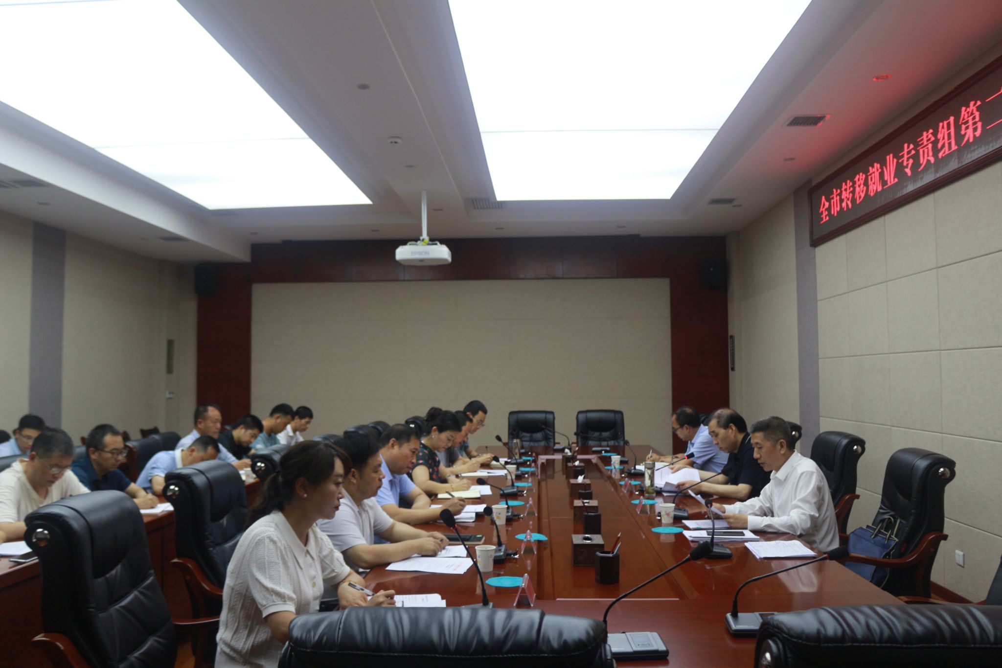 为深入学习贯彻习近平总书记在中共中央政治局第十四次集体学习时关于促进高质量充分就业的重要讲话精神,认真落实省委农村工作领导小组会议精神和市委、市政府对就业帮扶工作部署要求,总结上半年就业帮扶进展情况,分析当前形势,研究部署下一阶段重点工作。7月18日下午,市人社局组织召开全市转移就业专责组第二季度工作推进会,市人社局党组书记、局长剡海明主持召开并讲话,市转移就业专责组成员单位负责人、市人社局相关科室负责人、市劳务办全体干部职工,共计30余人参加会议。