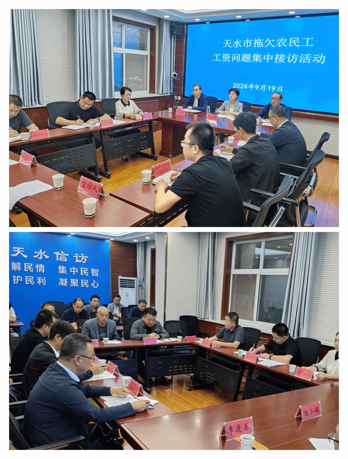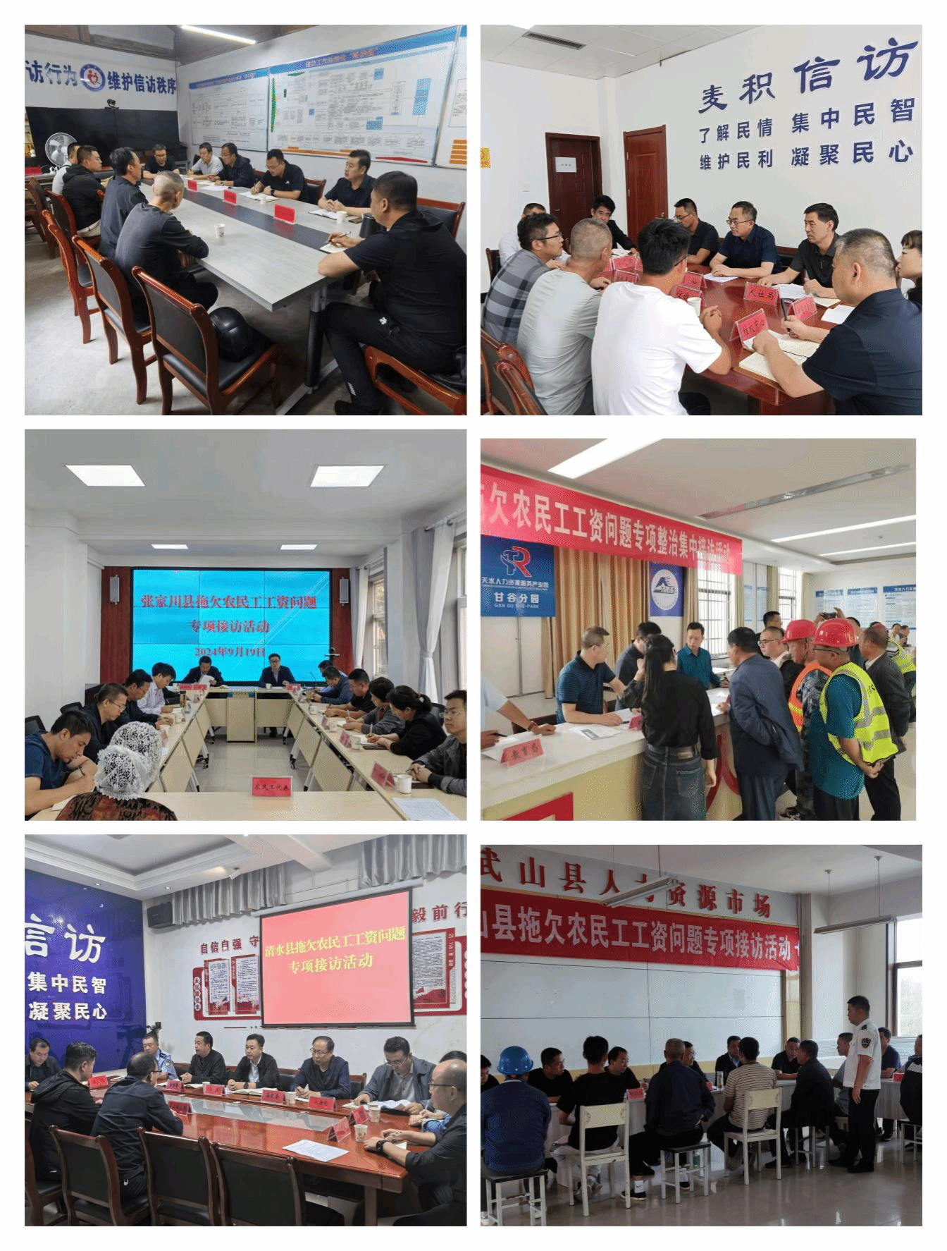 为深入贯彻落实全省拖欠农民工工资问题专项整治部署要求,集中化解拖欠农民工工资问题,切实维护农民工劳动报酬权益,2024年9月19日上午,天水市本级和7个县(区)同步开展了拖欠农民工工资问题专项整治集中接访活动,市县两级政府分管领导以及根治欠薪工作相关成员单位负责同志参加了集中接访活动。市政府党组成员、副市长汪小娟同志出席市级集中接访活动,市政府办公室、市人社局、市住建局、市信访局及经开区管委会等部门相关负责同志参加了接访活动。