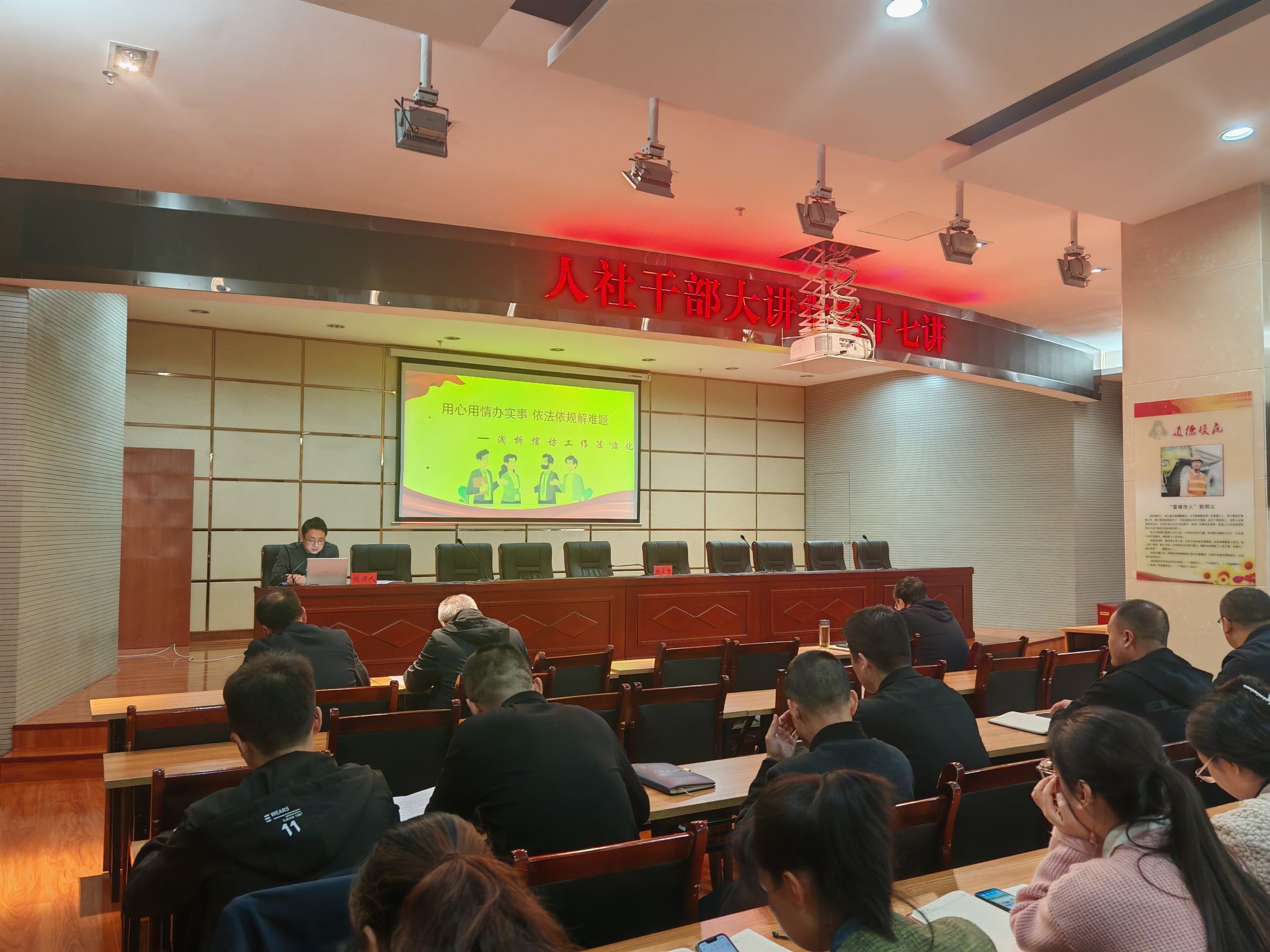 10月17日下午,天水市人社局第十七期“人社干部讲堂”开讲。市人社局调解仲裁科科长王雄以“用心用情办实事 依法依规解难题——浅析信访工作法治化”为题就信访工作作专题讲解,局机关、局属各单位全体干部参加讲座。