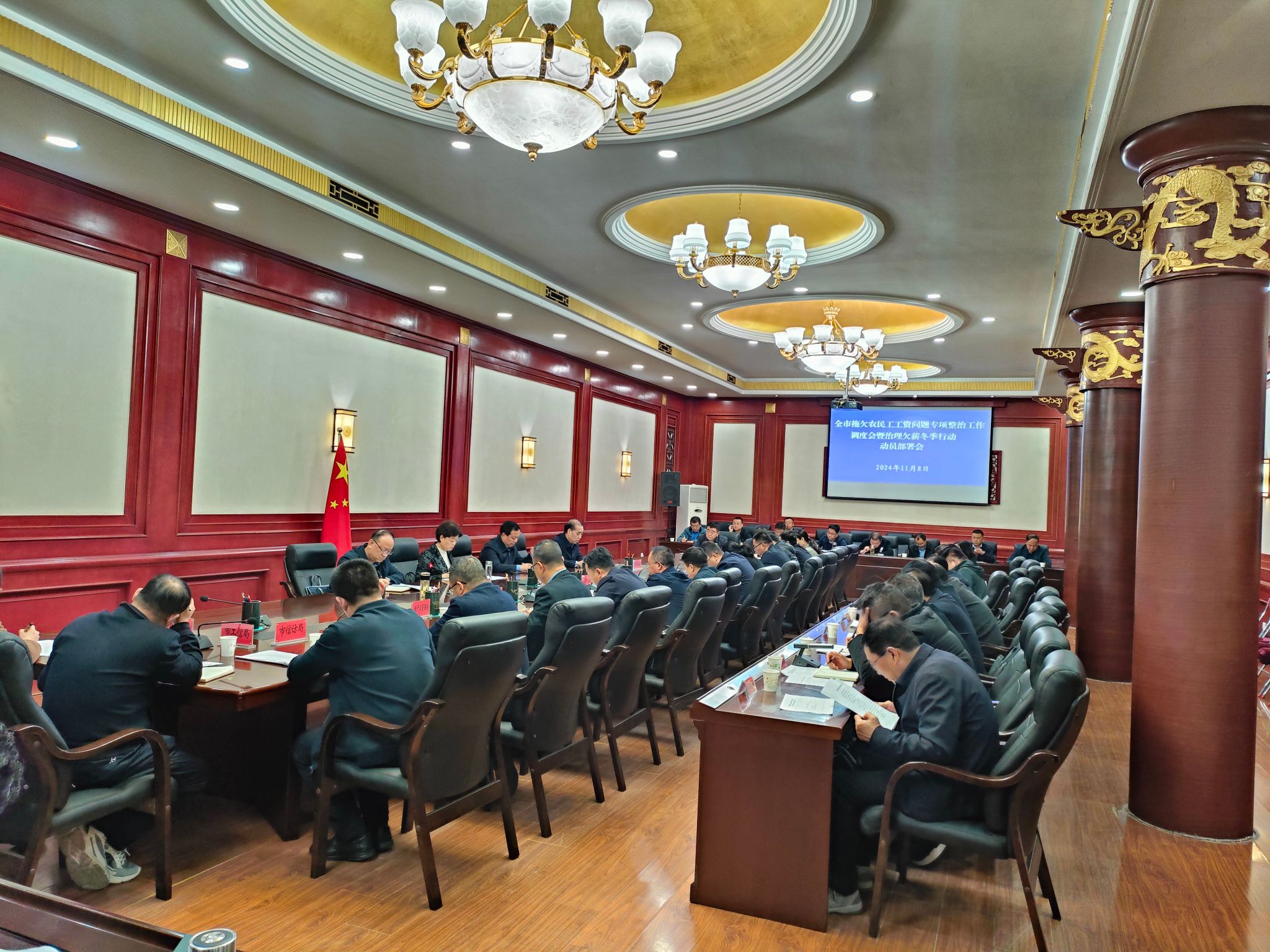 11月8日,全市拖欠农民工工资问题专项整治工作调度会暨治理欠薪冬季行动动员部署会召开。贯彻落实国家和省上治理欠薪有关部署要求,通报全市拖欠农民工工资问题专项整治工作进展情况,分析研判当前面临的形势,安排下一步重点工作任务。副市长汪小娟出席会议并讲话。