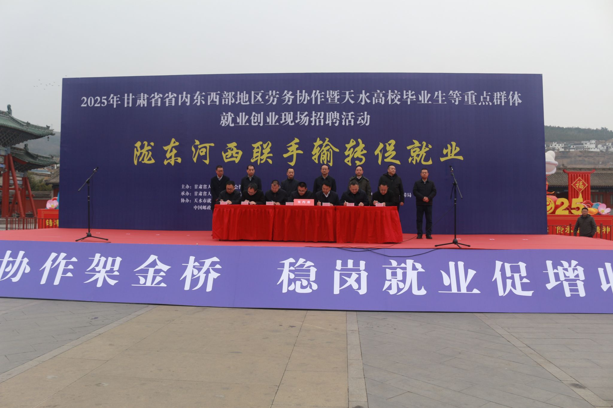 为深入学习贯彻党的二十大和二十届二中、三中全会精神以及习近平总书记视察甘肃重要讲话重要指示精神,认真落实把“高质量充分就业作为经济社会发展优先目标”和省市系列就业决策部署,全力帮助高校毕业生、农民工等重点群体高质量充分就业,3月5日上午,省内东西部地区劳务协作暨天水高校毕业生等重点群体就业创业现场招聘活动在天水市伏羲庙广场举行。