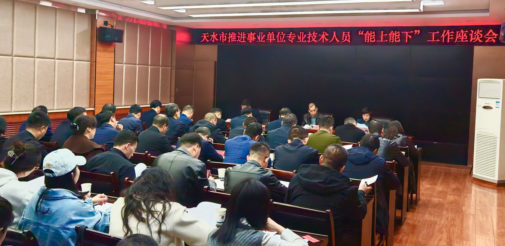 3月24日,市委组织部、市人社局召开天水市推进事业单位专业技术人员“能上能下”工作座谈会。