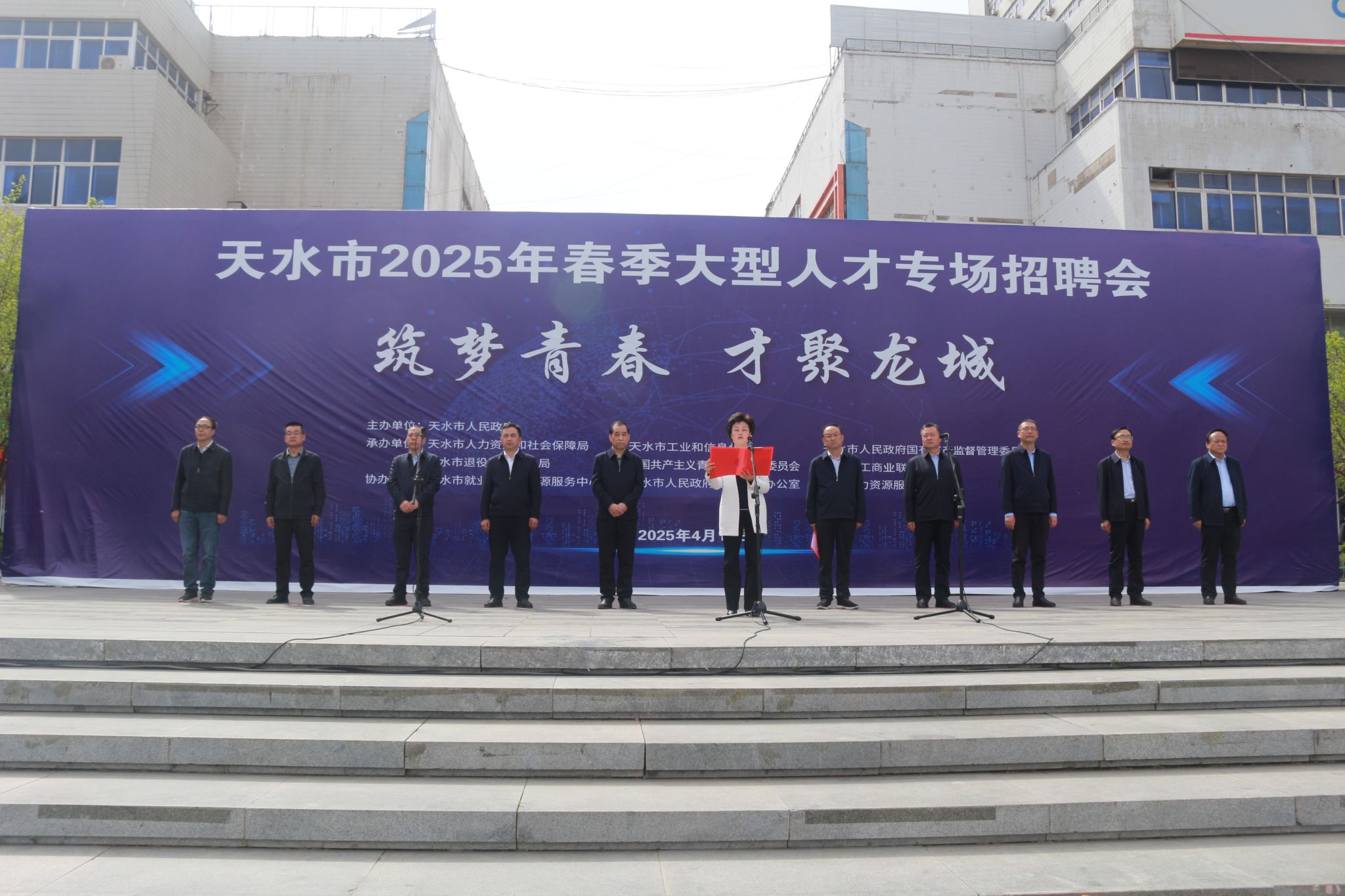 4月10日,“筑梦青春˙才聚龙城”天水市2025年春季大型人才专场招聘会在龙城广场举办。副市长汪小娟讲话并宣布活动启动,市人社局、工信局、退役军人事务局、国资委、团市委、工商联主要负责人,校地联盟成员单位、全市大中专院校代表800多人参加现场招聘活动,活动由市政府办公室副主任李逢春主持。