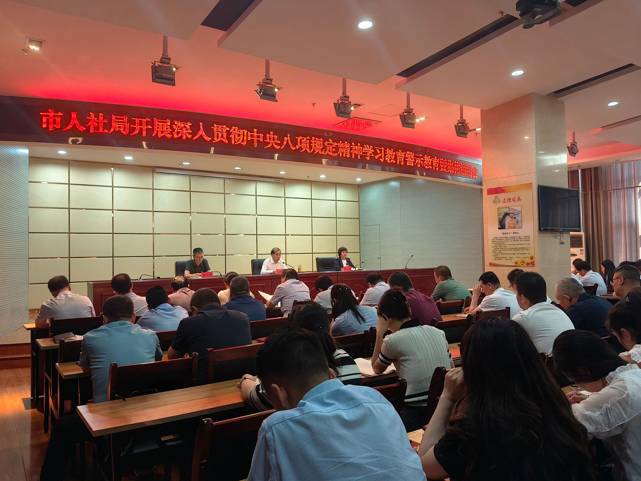 按照开展深入贯彻中央八项规定精神学习教育总体安排,6月12日,市人社局召开深入贯彻中央八项规定精神学习教育警示教育暨集体谈话会,会上传达学习了中央、省市有关会议文件精神,通报了违反中央八项规定精神典型案例,观看了警示教育片,市人社局党组书记、局长剡海明对全局党员、干部职工进行了集体谈话。