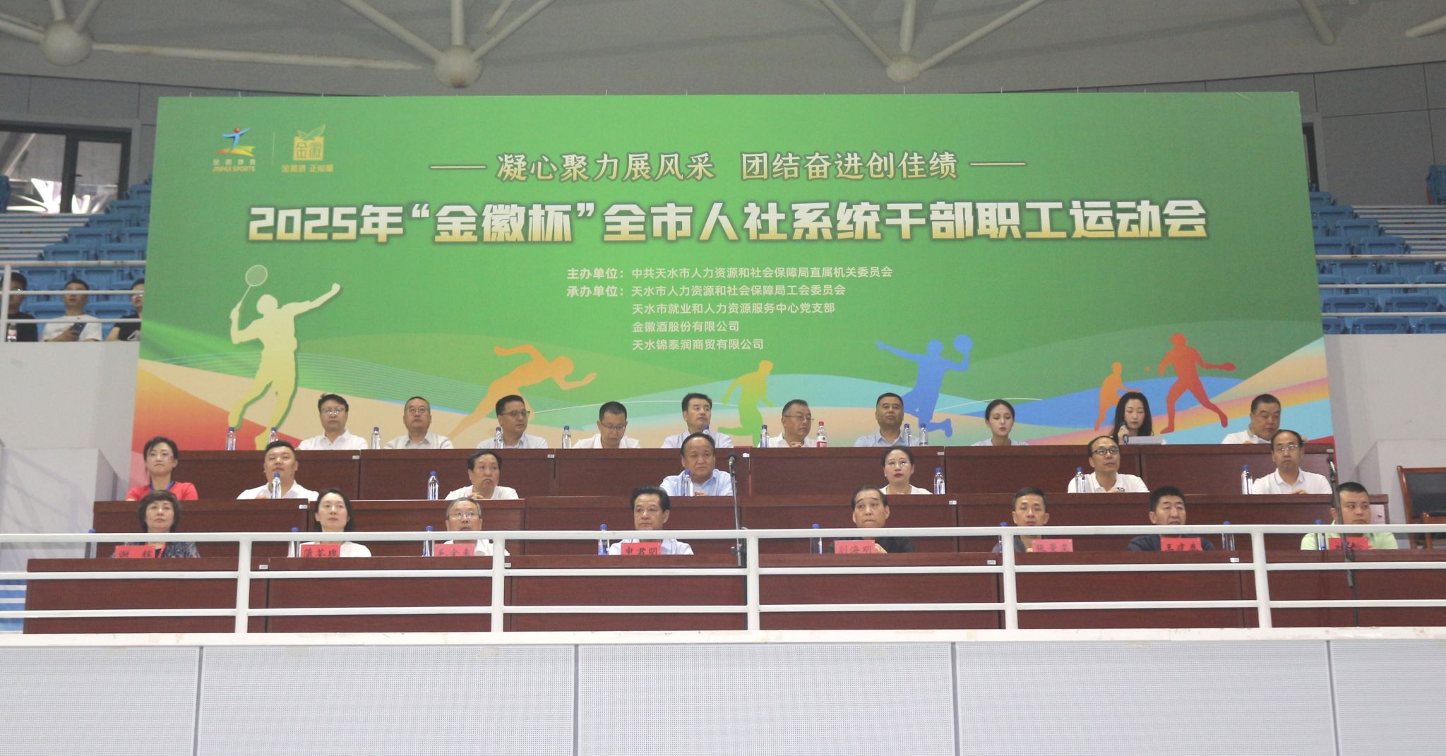 为贯彻落实新时代党的建设总要求,切实增强基层党组织凝聚力、向心力,丰富干部职工文化生活,营造积极向上、和谐奋进的良好氛围,6月13日,由市人社局直属机关党委主办,局工会、市就业和人力资源服务中心党支部、金徽酒股份有限公司、天水锦泰润商贸有限公司联合承办的2025年“金徽杯”全市人社系统干部职工运动会在天水市体育中心盛大开幕。