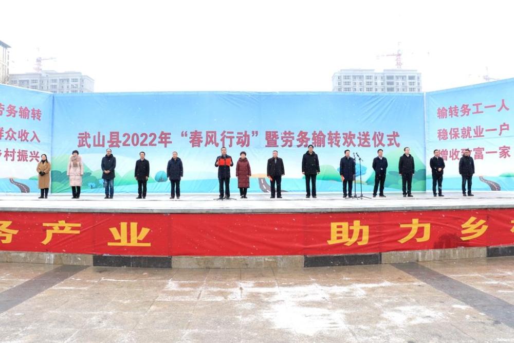 一元肇始虎步开,渭川大地春潮涌。2月10日,农历正月初十,武山县2022年“春风行动”暨劳务输转欢送仪式在人民广场举行。副市长汪小娟出席仪式并宣布发车启程,省人社厅二级巡视员刘效明、县委书记王新强分别讲话,县委副书记、县长王志成主持欢送仪式。