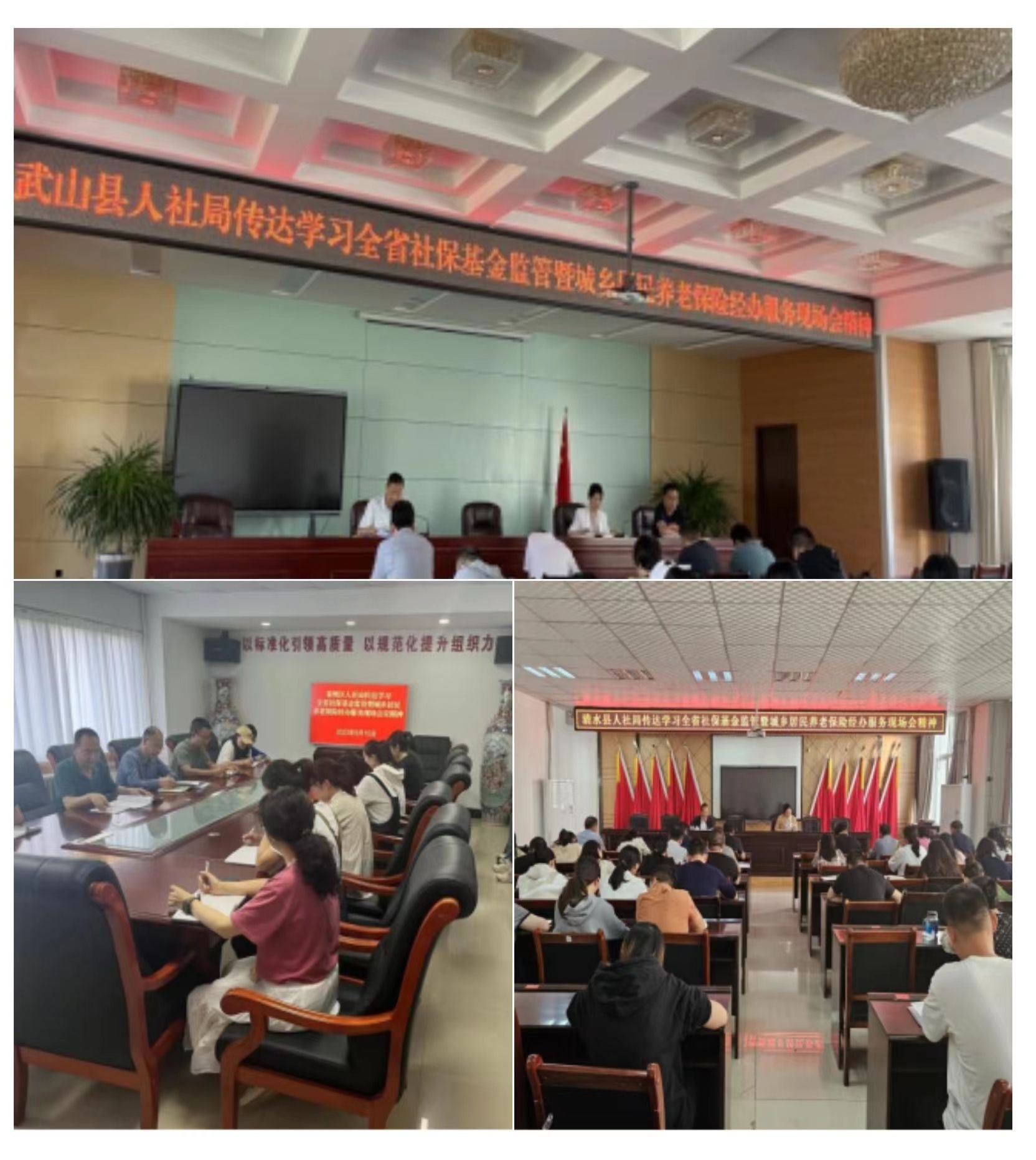9月14日、15日,天水市、县两级社保经办机构集中召开专题会议,传达学习9月12日至13日全省社保基金监管暨城乡居民养老保险经办服务现场会会议精神,研究部署下一阶段全市基金监管和社保经办服务等重点工作。